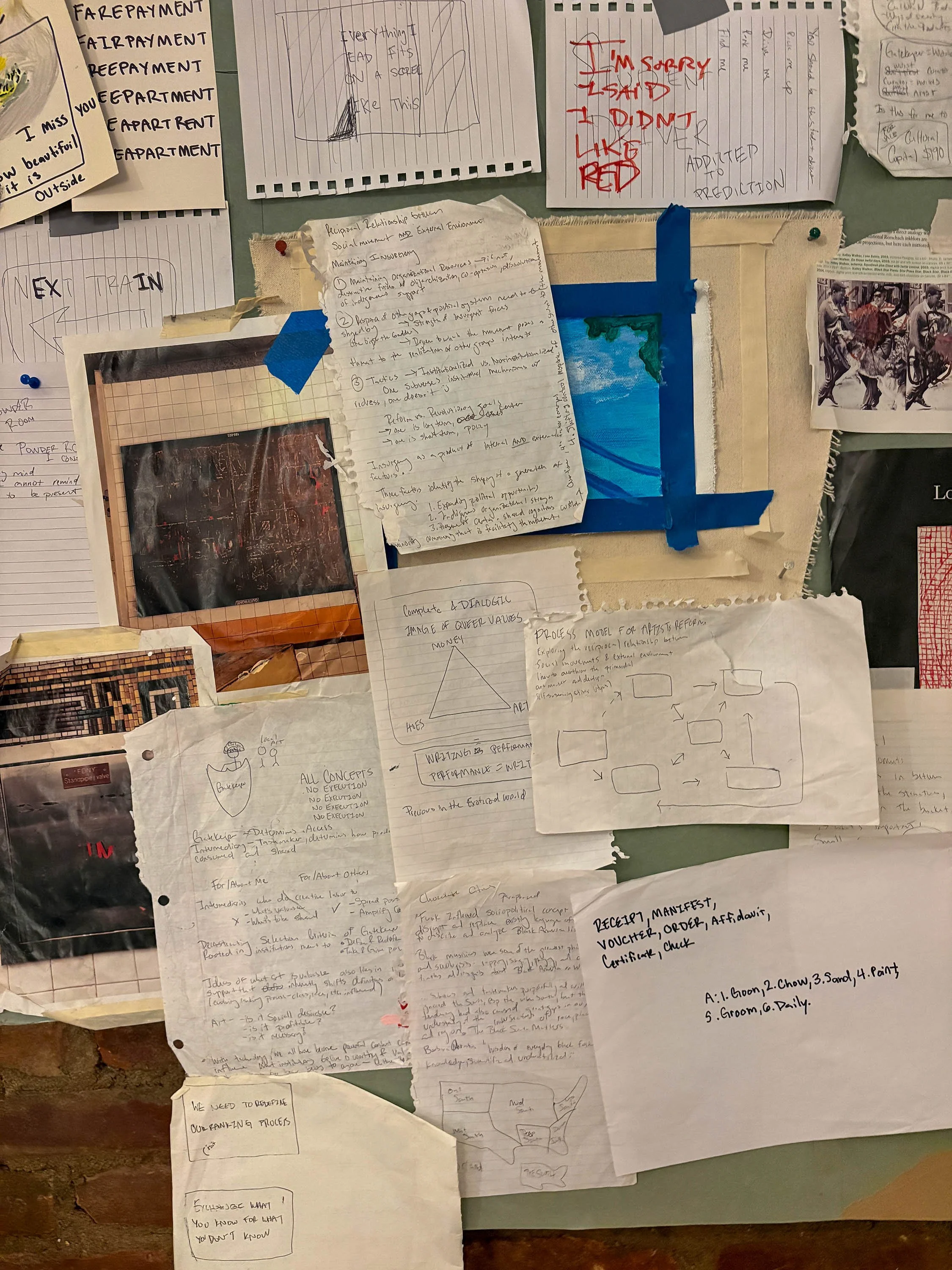 RD: This is a complicated question! Isn't it about the journey, not the destination? Does that apply here? I frequently feel conflicted about how little of my process is shown in my "final" paintings. For me, the process of planning a painting is very very heavily rooted in writing. I write obsessively in my notebook: research on the concept I'm curious to explore, write poems about it, my thoughts on it, even charts and graphs. All of that happens typically over the course of a few months before I even prep my canvas.